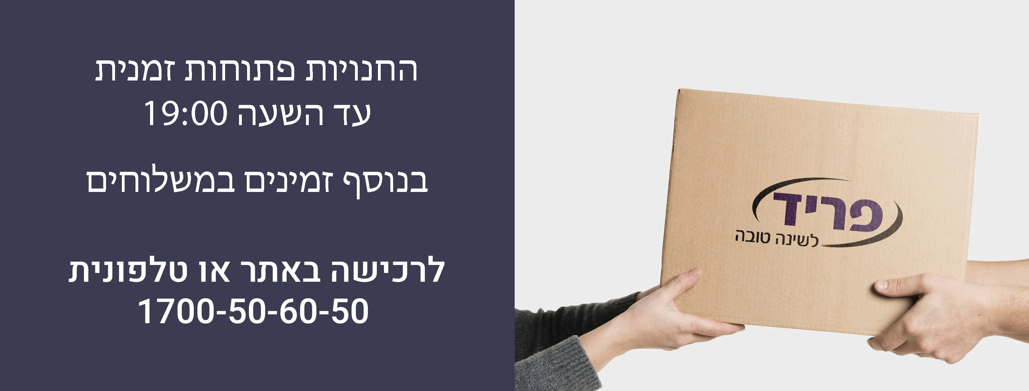 שעות פתיחה: א'- ה 10:00-19:30